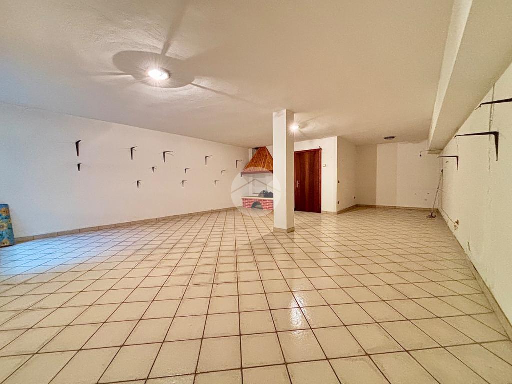 Al piano terra sono presenti due box auto, attualmente separati da basculante ma internamente comunicanti, mentre sempre dallo stesso livello si accede, tramite una porta dedicata, alla zona seminterrata, raggiungibile anche dall’abitazione, dove si trovano una taverna con camino e ulteriori locali ad uso cantina.
