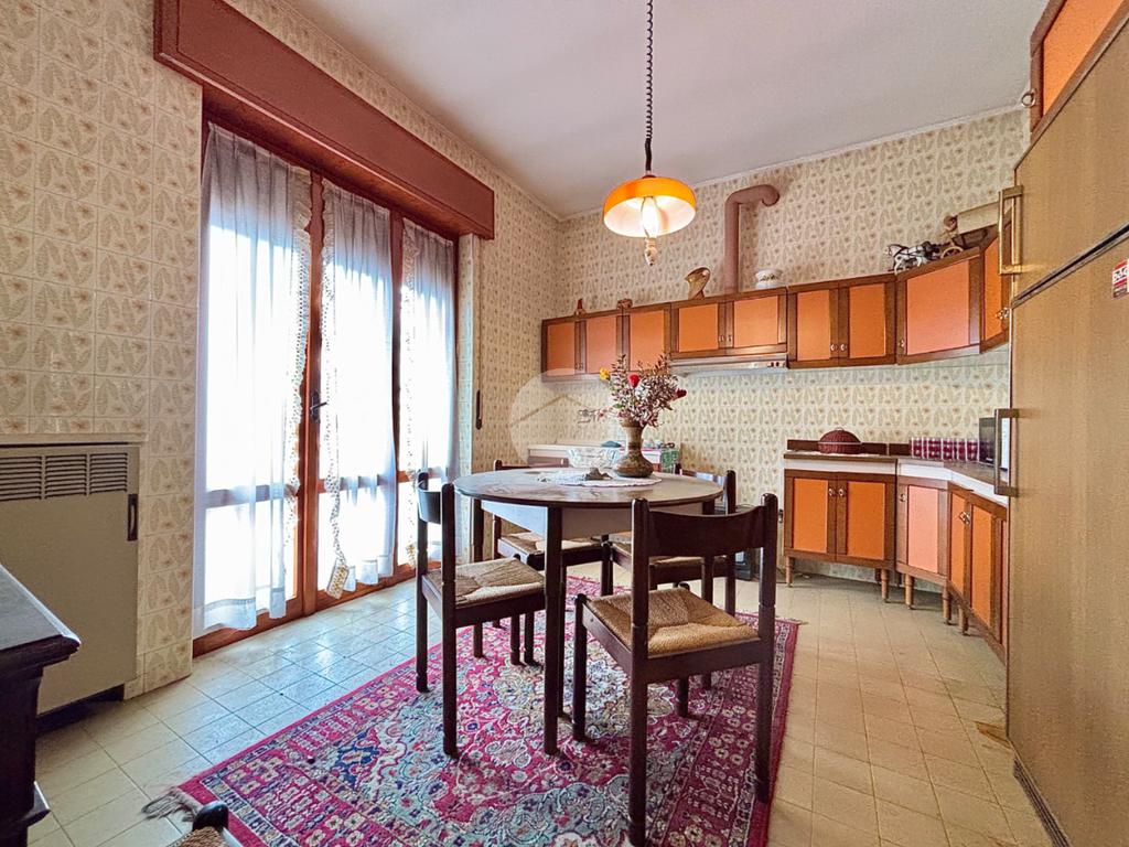 L’abitazione principale si sviluppa al piano rialzato ed è composta da ingresso con accesso diretto alla cucina abitabile, dotata di balcone con affaccio sul giardino, e a un soggiorno di generose dimensioni, anch’esso con affaccio sul verde e accesso al balcone. Un disimpegno conduce alla zona notte, composta da tre camere da letto (due matrimoniali e una singola) e da un bagno finestrato con vasca.
