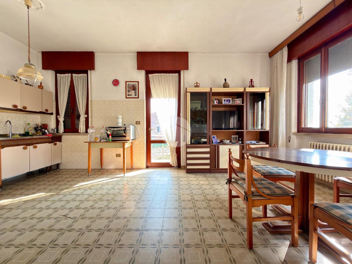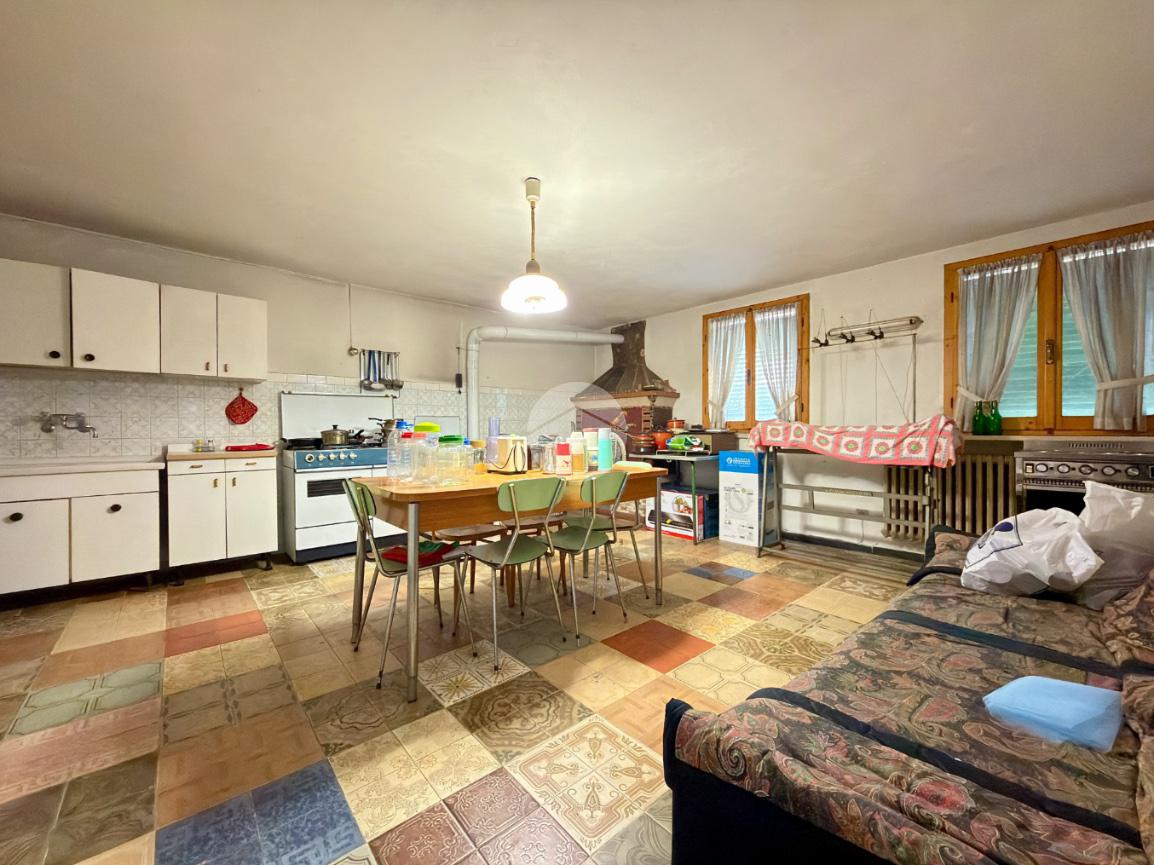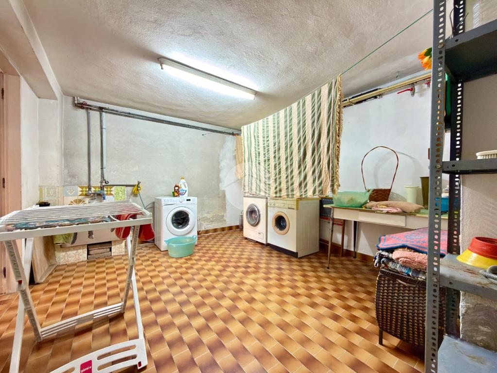 Dal piano principale, tramite una porta situata nella cucina, si scende nella zona seminterrata che offre ambienti aggiuntivi ideali per molteplici esigenze. Qui si trovano una taverna con camino e cucinotto, una zona lavanderia, un secondo bagno con doccia, la centrale termica, una cantinetta adatta alla conservazione di vini e salumi, oltre a un ampio locale accatastato come cantina ma attualmente adibito a garage, in grado di ospitare comodamente fino a tre autovetture.